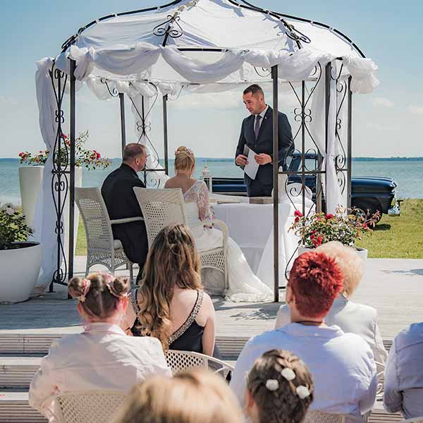 Erleben Sie eine unvergessliche freie Trauung auf dem Segelschiff Weiße Düne und segeln Sie auf dem Achterwasser gemeinsam mit Ihren Freunden und ihrer Familie in den Hafen der Ehe ein. Sie möchten lieber an Land bleiben? Wie wäre es dann mit einer Trauung direkt am Achterwasser im Inselhof in Zempin bei einem unvergesslichen Sonnenuntergang und einer einzigartigen Location zum heiraten und feiern?